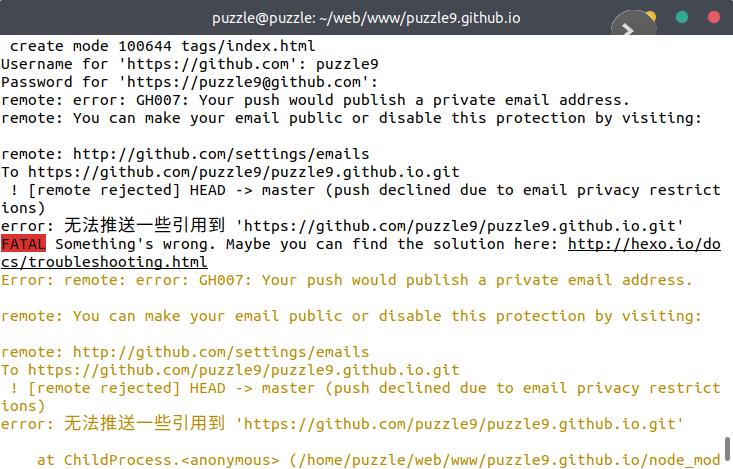 remote: error: GH007: Your push would publish a private email address.