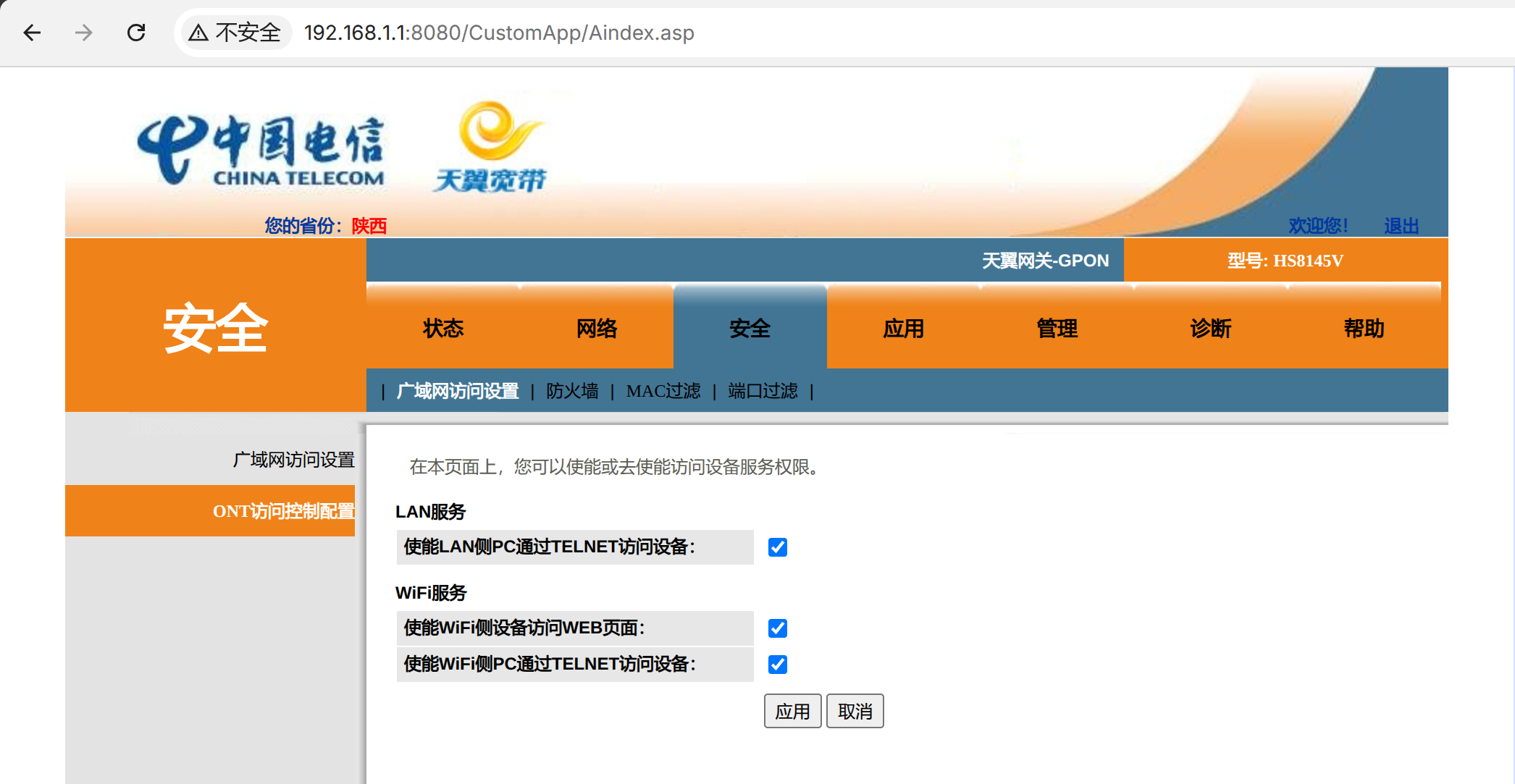 好在是 默认 用户名 telecomadmin 密码 nE7jA%5m